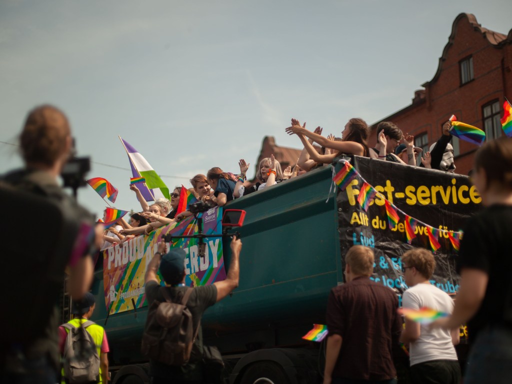 2018-06-10, Malmö, Pride tåget kommer förbi Möllevångstorget och jag passar på att dokumentera.