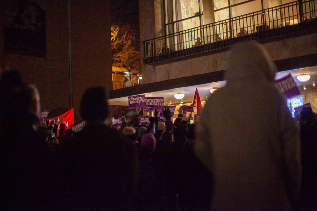 Demonstration mot katastrofbudgeten som föreslagits, allt helt marknadsmässigt.
