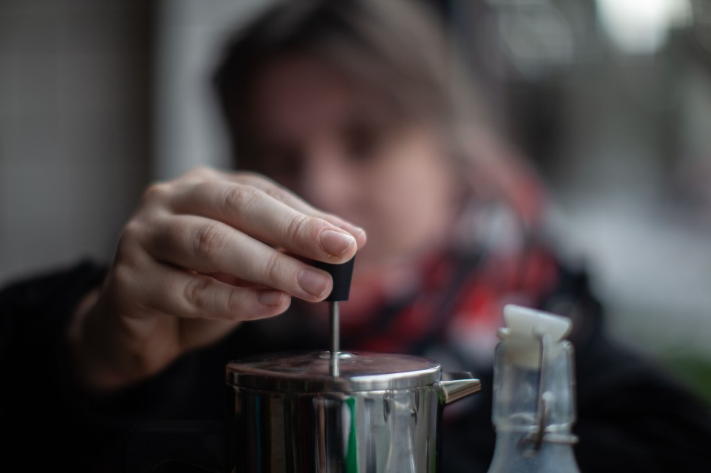 Hanna making the coffee we are out and about.
