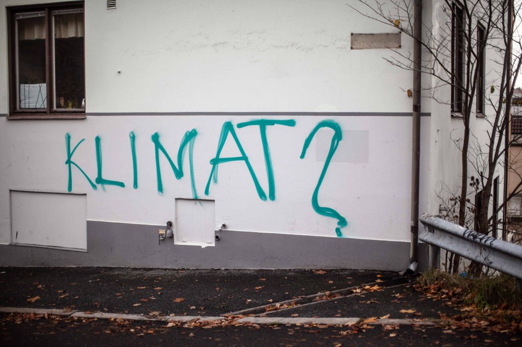 Klimat? sprayed on the walls, Klimat? = Cimate?
