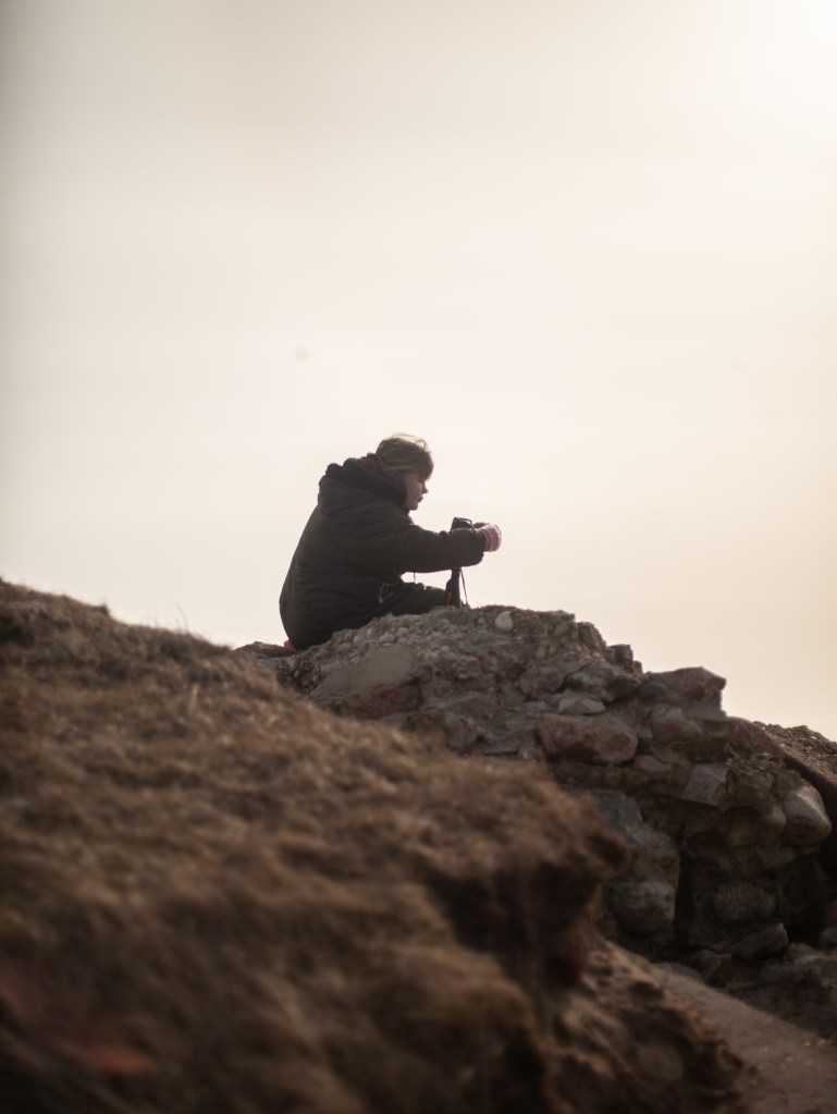 Hanna using the tripod,
