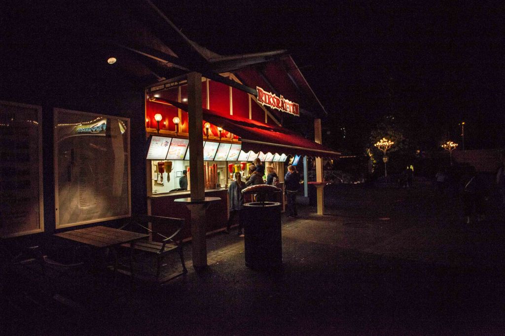 2019-08-30, Food and then walking around at Liseberg, waiting for Kraftwerk to start their 3D show.
