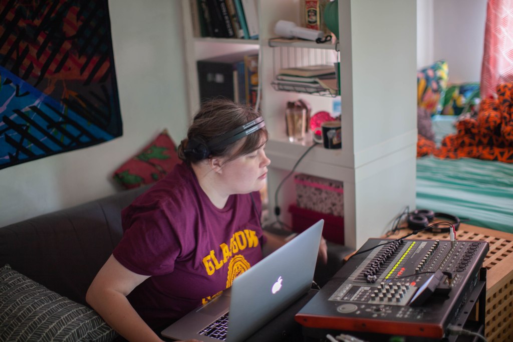 2018-06-22, Göteborg, Hanna gör musik sedan tar vi en promenad och lyssnar lite på ravet som pågår på ghetto-playan.