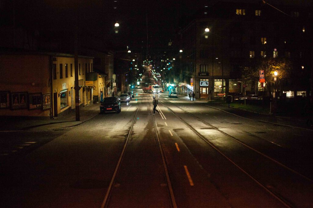 Picture of Karl-Johansgatan view from Stigbergstorget towards “Hängmattan” on the left in the direction of the car you can see a yellow building, a former cinema which is now mostly empty. A few smaller places, including “Palle’s” street kitchen, can be found in the building. In the center of the picture, a person with a backpack is crossing. Further down, a truck is about to turn onto Karl-Johansgatan in the direction of me, it’s about 60-70 meters down, so don’t panic.