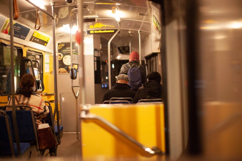 In the tram.
