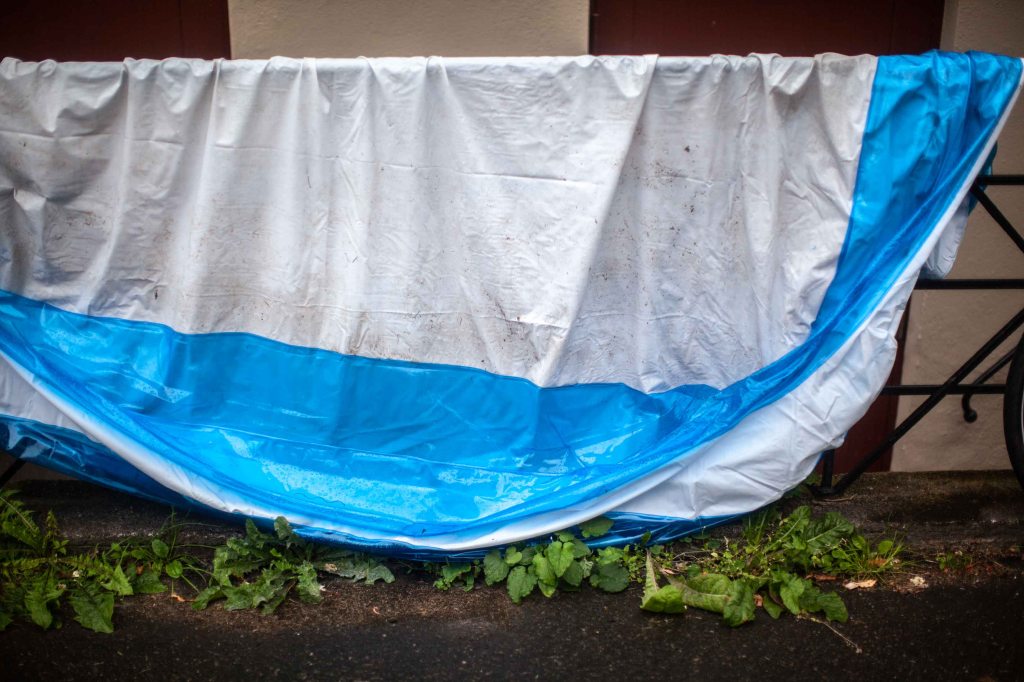 Gården vilar när jag tar mig iväg mot Planket, Allégatan vid Järntorget.