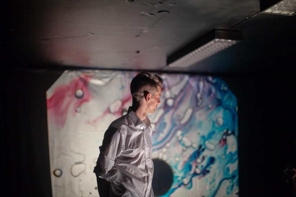 2018-07-02, Även dag tre händer det saker på Tranås at The fringe, Fuji Hoffan viar sina ljusexperiment alá 1968 hippie färg på overhead fint. Sedan porträtt på fågel (vilket sedemera Eda Emirdağ använt ett antal gånger, kul) dagen blev kväll och ytterligare några bilder togs bland annat porträtt på ett gäng hundar.