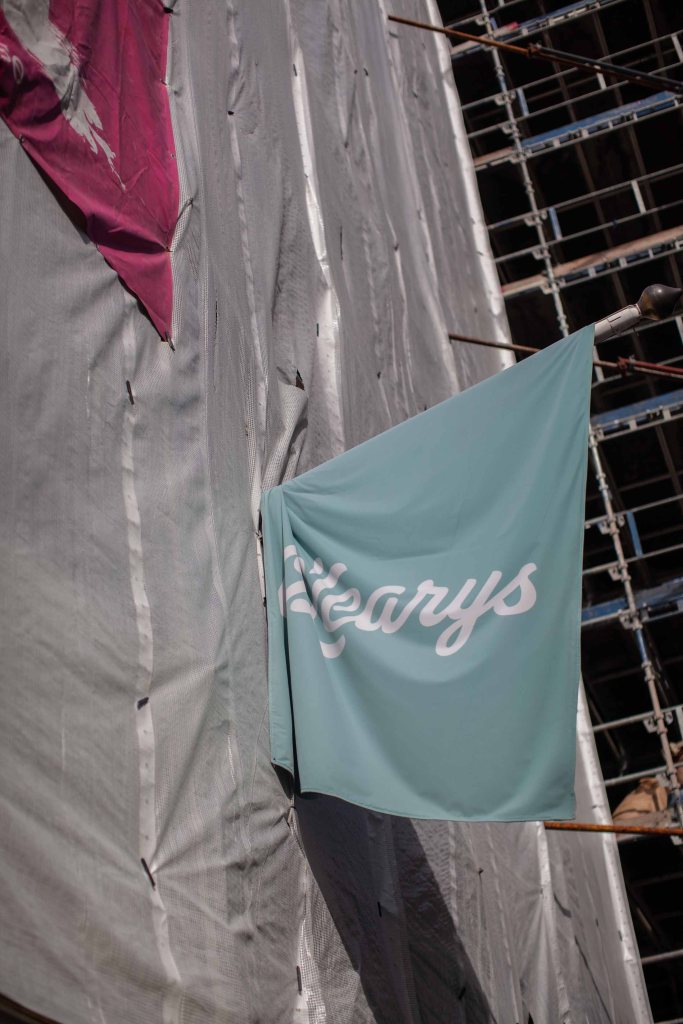 Fixing the artwork, the rain has made its marks on the laminated prints.