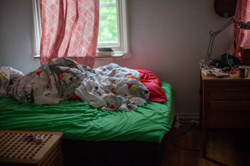 Obäddad säng, bäst för att slippa kvalster tydligen, (sa min gamla tyska två lärare, Leo).