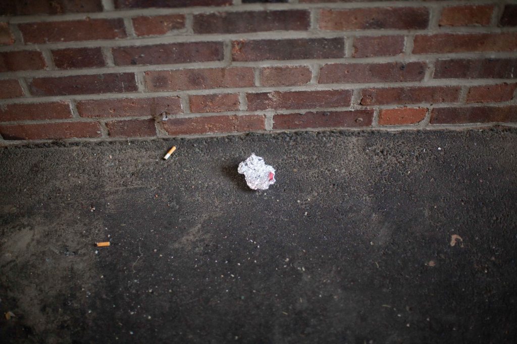 2018-02-25, Lite piss i snön; och på ett hörn.