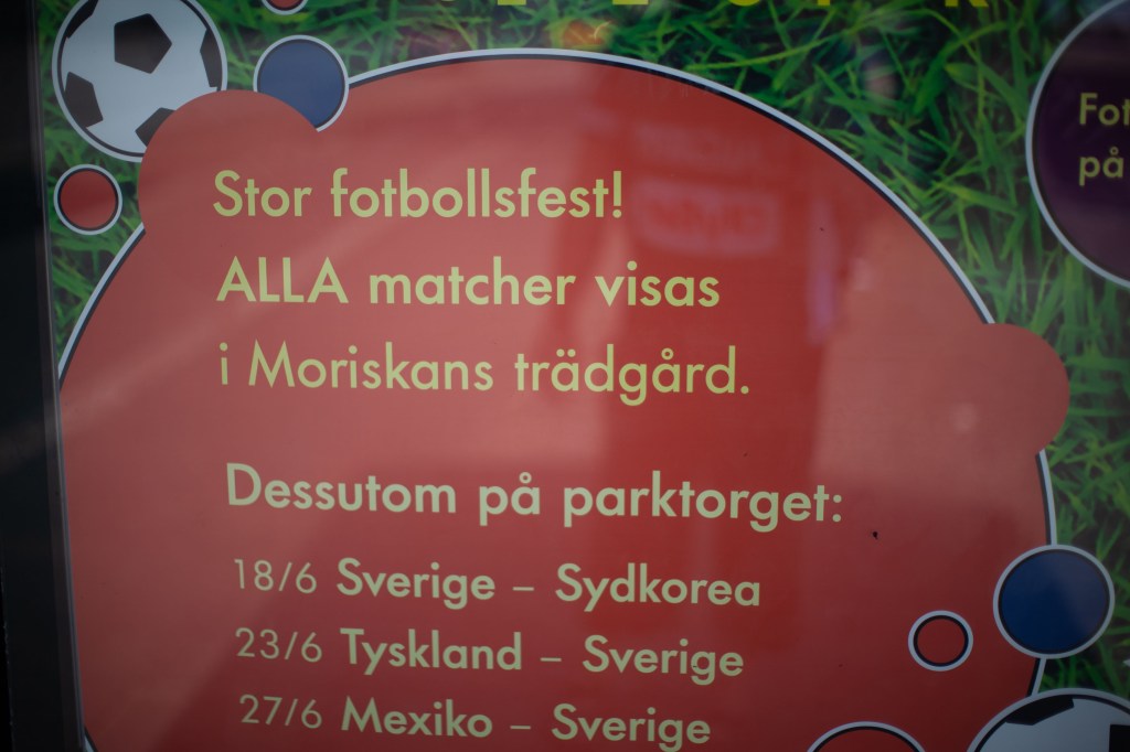 2018-06-23, Göteborg slutet på kvällen före och så fotbolls-VM på två olika skärmstorlekar, en hemma och så en på Ullevi. Sverige mot Tyskland spännande men kanske mest kul att kolla på alla människors reaktioner.