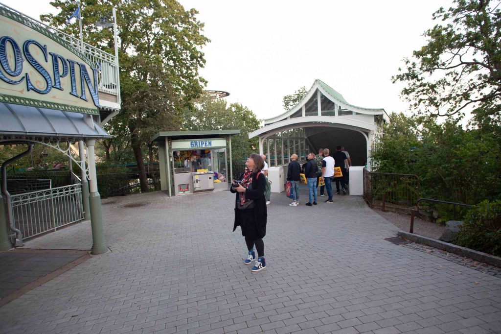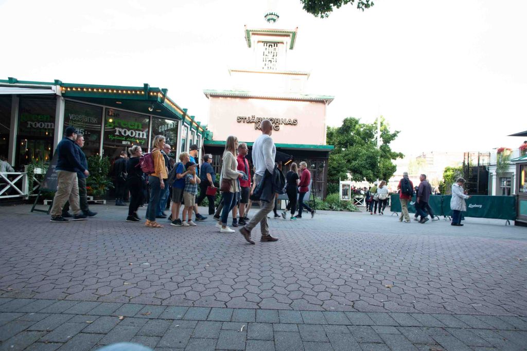 2019-08-30, Food and then walking around at Liseberg, waiting for Kraftwerk to start their 3D show.