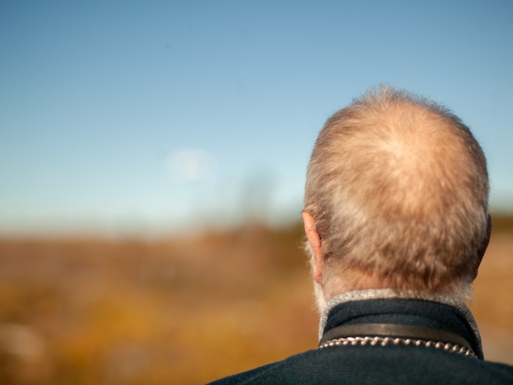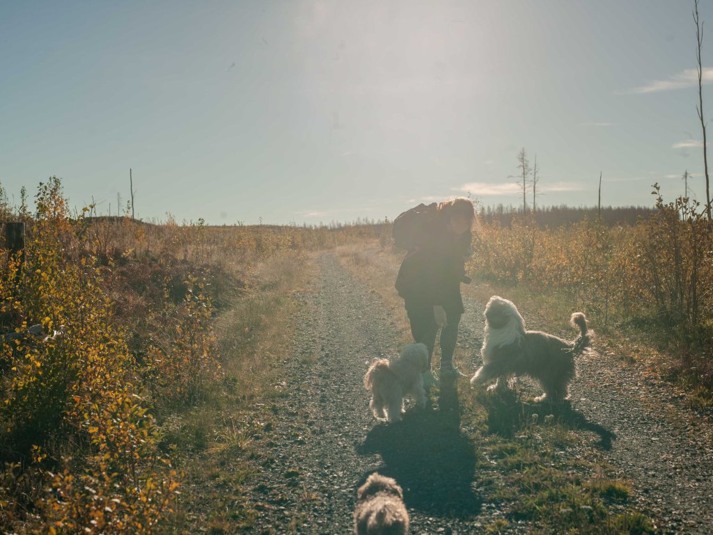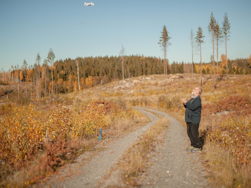 Hanna kommer vi ser när Lasse kör drönaren och tar en tur på Svinryggen.