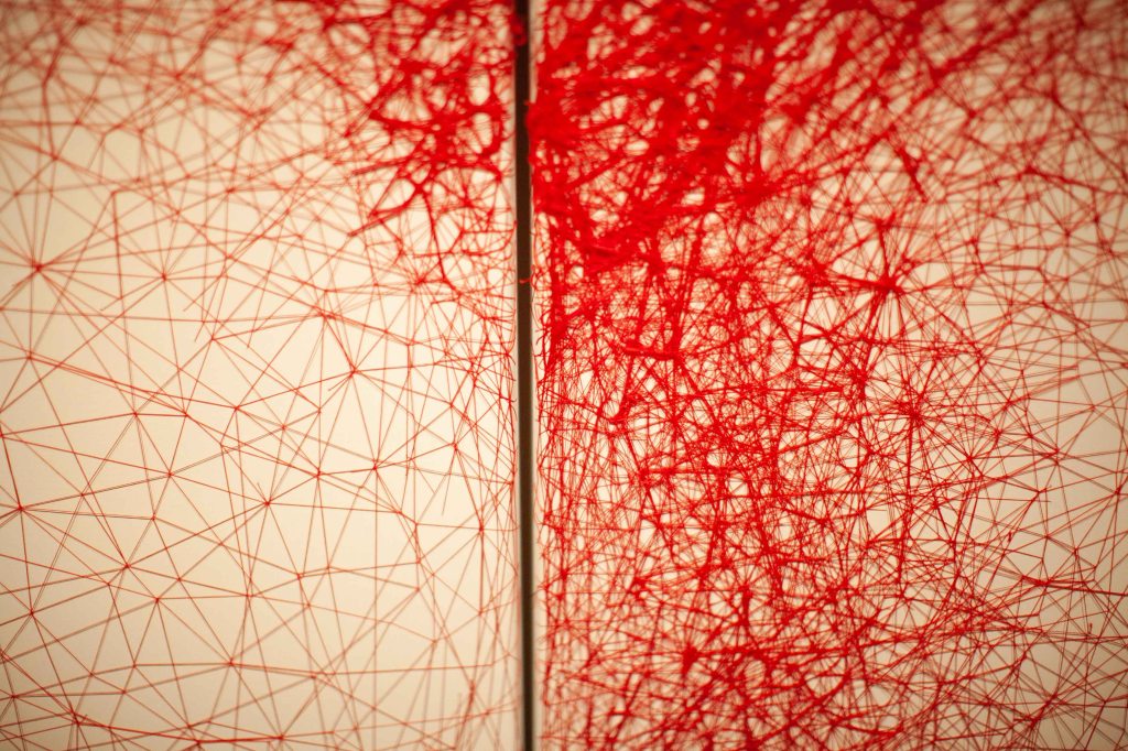 2018-06-07, Tillsammans med med Lasse (min far) kollar utställning på Göteborgs konstmuseum där Chiharu Shiota ställer ut. Fin fint.