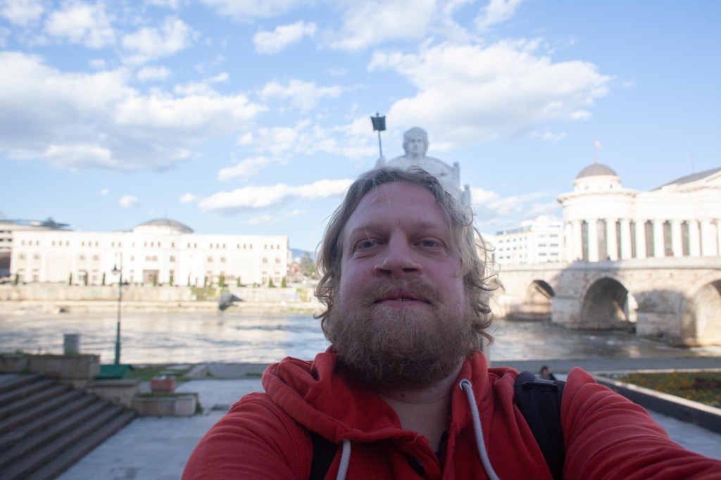 2018-04-02, Visit Skopje. Hanna, me and Jessica visiting the capital of North Macedonia.