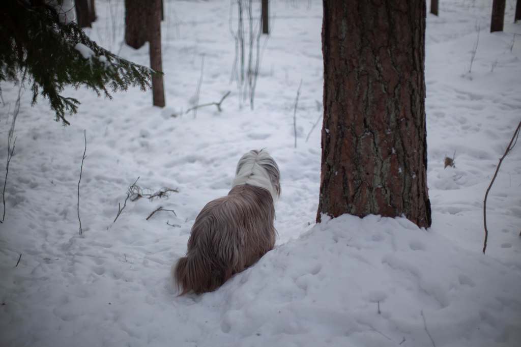 2018-02-25, Lite piss i snön; och på ett hörn.