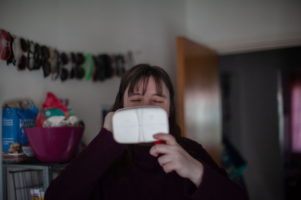 2018-03-04, Norberg hälsar på mor och far samt Ebba, Vilda & Zickan. Min mor är i full gång med skapandet.