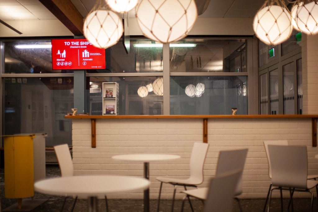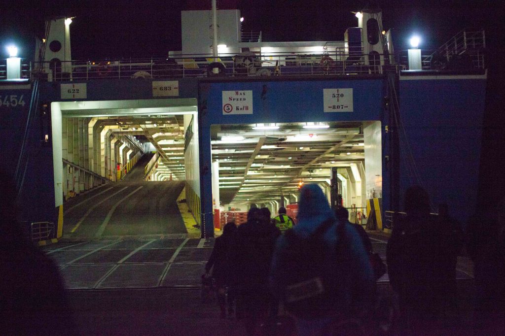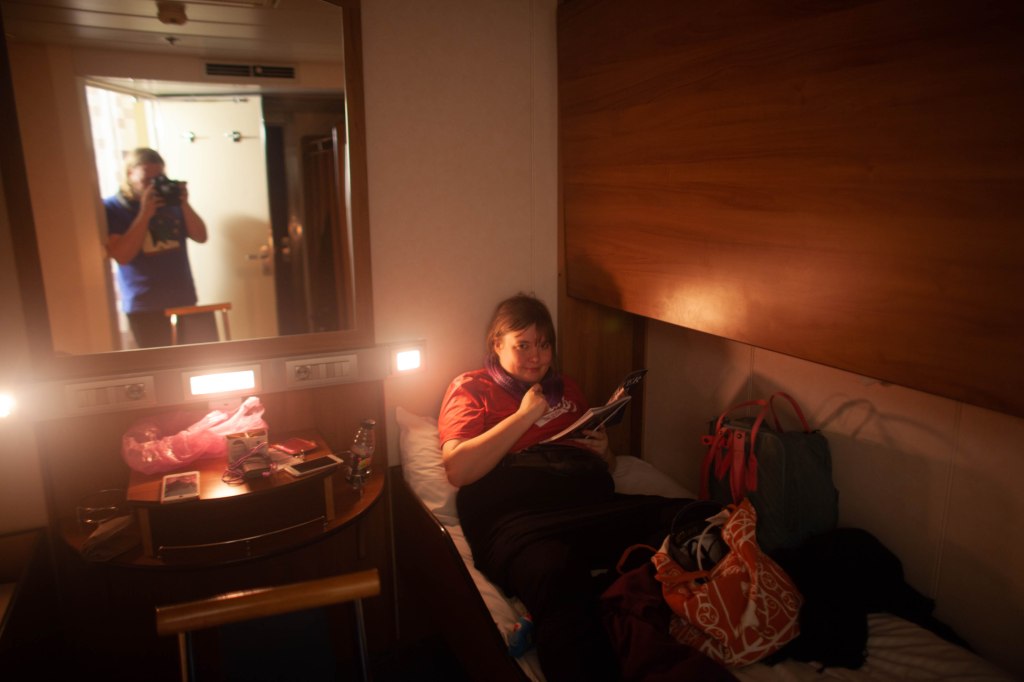 Ombordgång och installering i hytten, vi och en massa lastbilschaffisar.