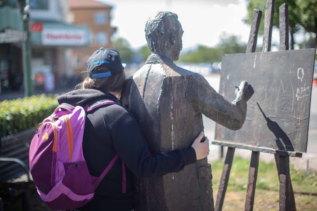 Jonas riktar kameran mot hörnet av byggnaden där Rövsvett enligt legenden (och nog helt riktigt) gjorde sin första spelning…