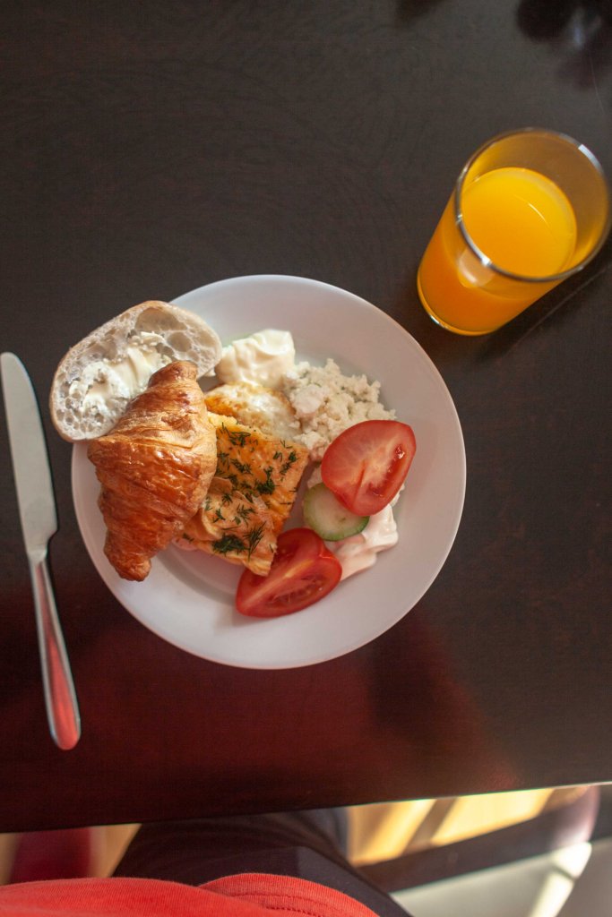 Hotel och hotellfrukost.